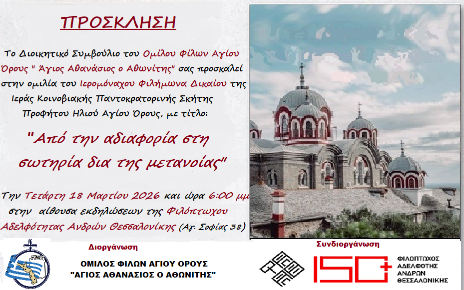 20 Μαρτίου, 2026Post navigationPreviousPrevious post:ΠΡΟΣΚΥΝΗΜΑΤΙΚΗ ΑΠΟΣΤΟΛΗ ΑΠΡΙΛΙΟΥ 2026NextNext post:Προσκυνηματική εκδρομή Άγιοι Τόποι