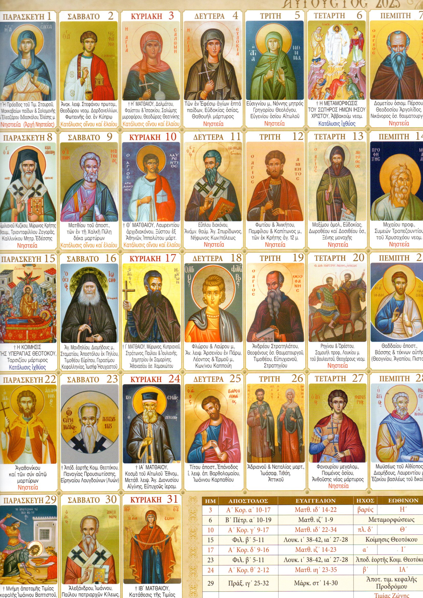 8 Σεπτεμβρίου, 2025Post navigationPreviousPrevious post:Εορτή Αγίου Αθανασίου του Αθωνίτη, Σάββατο 5 Ιουλίου 2025NextNext post:Εορτολόγιο μηνός Σεπτεμβρίου 2025