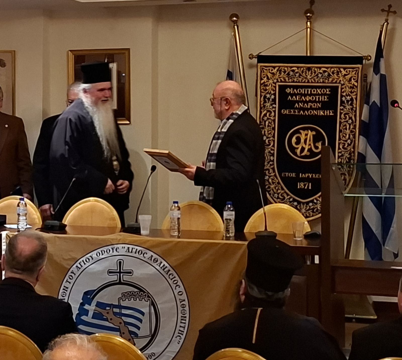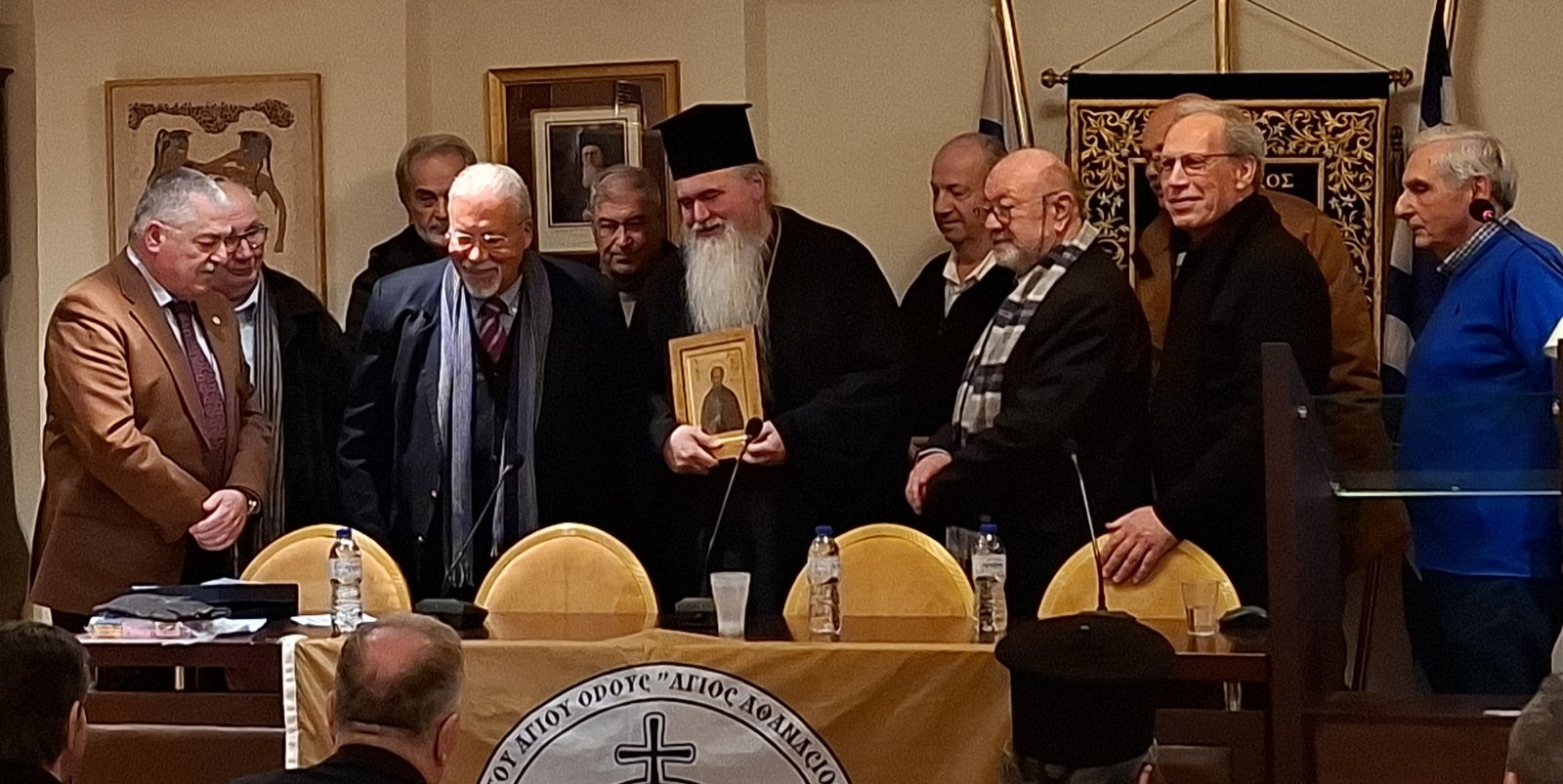Ο Πρόεδρος του ΔΣ παρέδωσε στον Σεβασμιώτατο Μητροπολίτη ως αναμνηστικό δώρο την Αγιορείτικη εικόνα του “Αγίου Αθανασίου του Αγιορείτη” προστάτη του Ομίλου μας.
